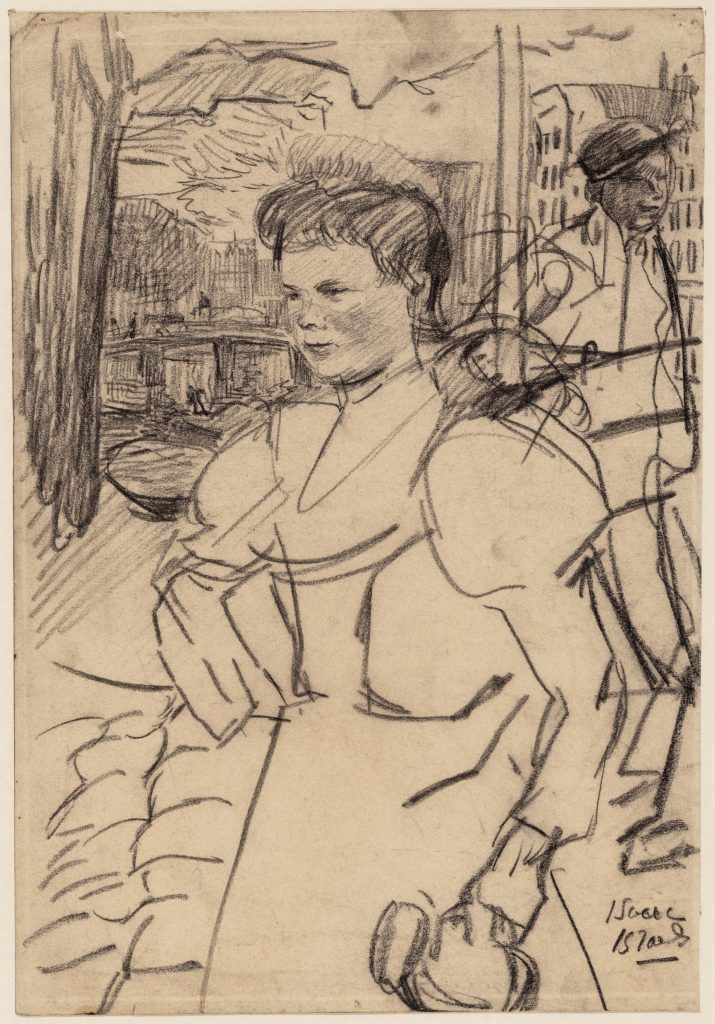 - Dienstbode op de Brouwersgracht. Getekend door Isaac Israëls (Israëls, circa 1892-1894)