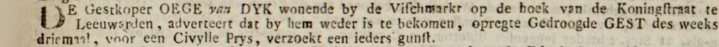 - Advertentie Leeuwarder Courant, d.d. 3 maart 1781 (Delpher)